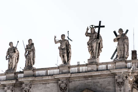 Salvatore Church in Rome, view from outside and inside. Frescoes and statues, architectural elements. A historic landmark, tourist destination. Ancient painting and stucco