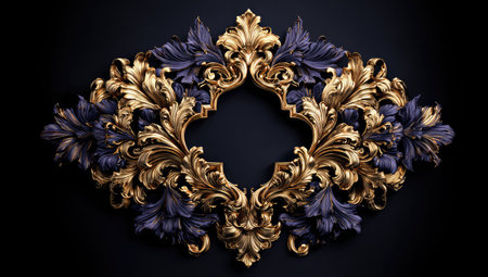 AI Generated. Opulent Gold and Dark Blue Ornate Floral Design