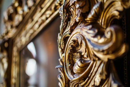 A vintage frame with ornate carvings and gold accents --ar 3:2 Job ID: 83ec1967-4839-401f-b637-8959c8736b78