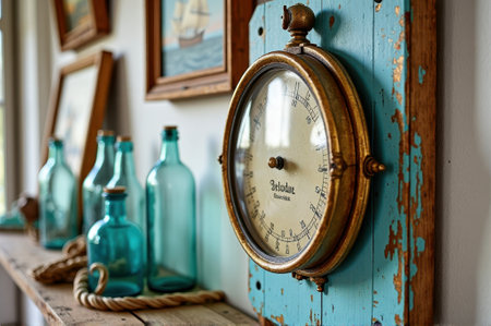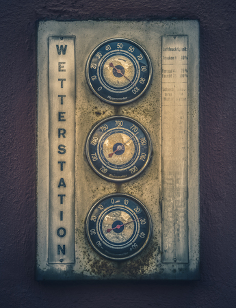 Vintage weather station on the wall Barometer, Hygrometer and Thermometer