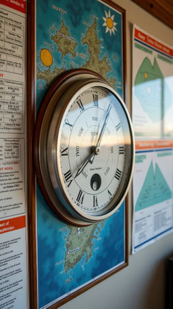 A closeup shot of a round controlling mechanism of a ship with a blurred background