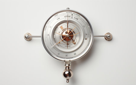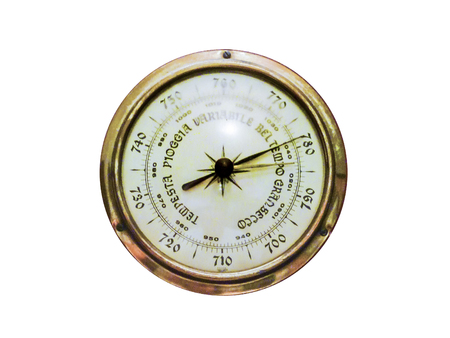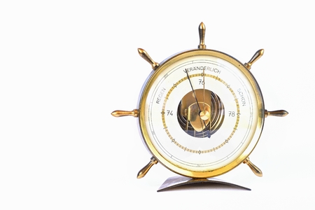 Beautiful old barometer. The shape of the rudder. Isolated on a clean white background
