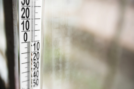 Thermometer out of the windows showing plus 10 Celsius warm. Spring, summer coming. Weather getting warmer concepts