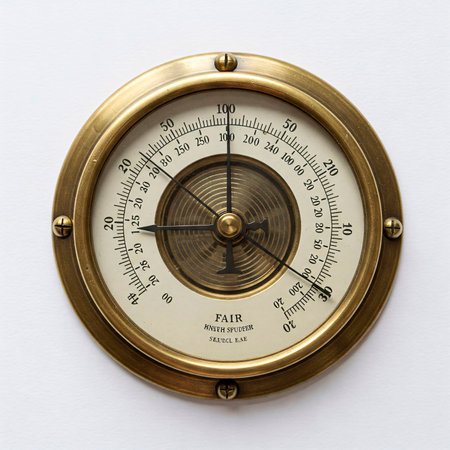 The dial of a barometer is photographed close-up