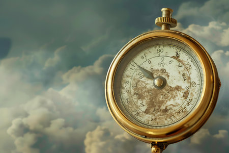 Conceptual image showing old barometer overlaid with cloudy sky