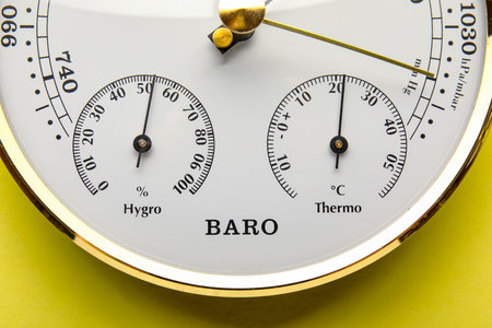 Aneroid barometer on yellow background