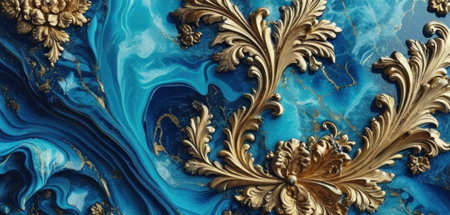 Explore the stunning ornate golden decorations set against a rich blue background. Ideal for elegant interior design inspirations and luxury themes.