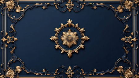 AI Generated. Opulent Gold and Dark Blue Ornate Floral Design