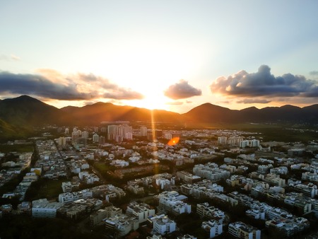 Aerial view of sunset behind the mountains in Rio De Janeiro, Brazil