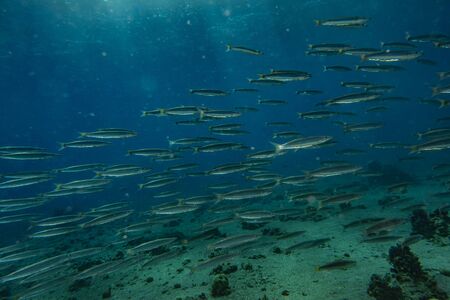 School of Obtuse barracuda (Sphyraena obtusata) in Andaman sea, Thailand