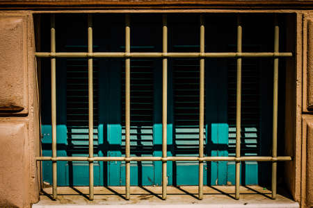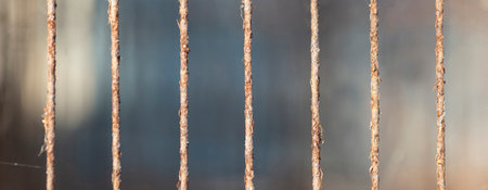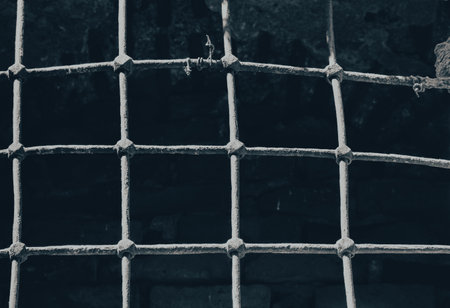 Conceptual jail photo with iron nails out of focus bars and window artistic conversion