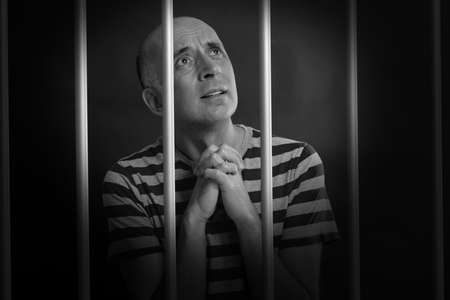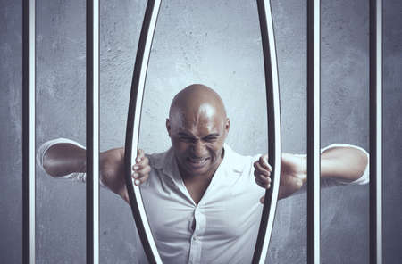 Prisoner beyond the bars of the prison cell, restriction of freedom
