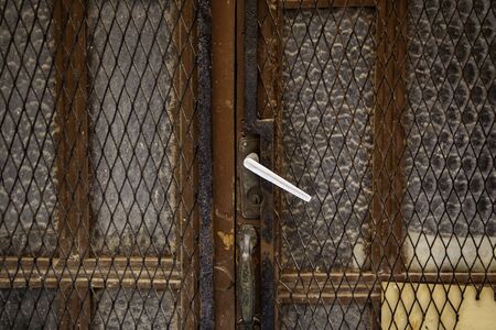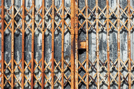 rusted vintage folding old metal door gate background, texture of Steel door background.