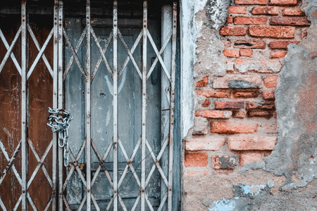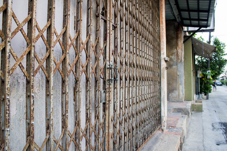 grungy steel door at the old traditional house in Songkhla, Thailand
