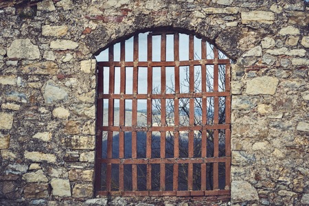 Conceptual jail photo with iron nails out of focus bars and window artistic conversion