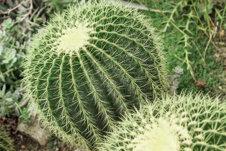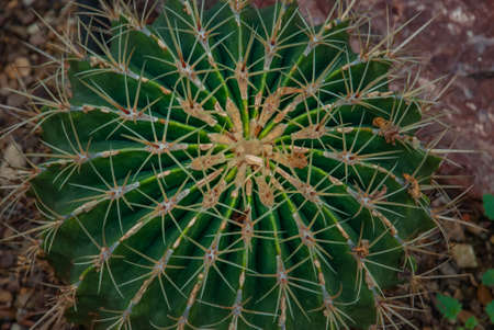Round cactus with needles close up top view