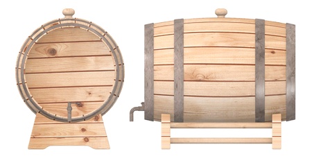 Wooden barrels for wine on a white background. Winemaking, wine. The concept of the production of alcoholic beverages. 3D rendering, 3D illustration