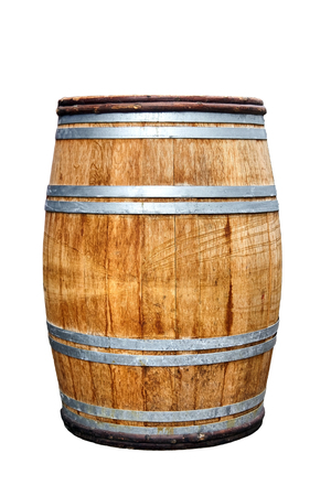 Wooden wine barrel with iron rings isolated on white with clipping path