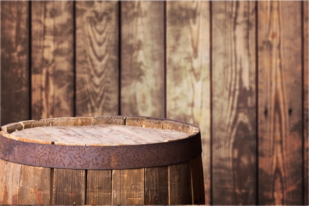 Vintage looking Wooden barrel cask for wine or beer isolated over white