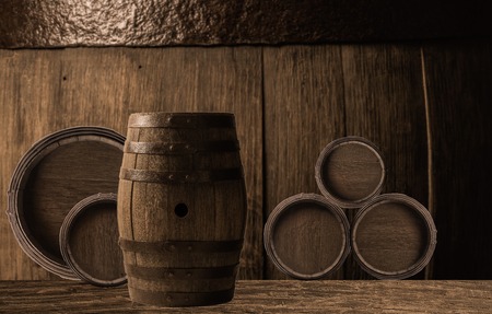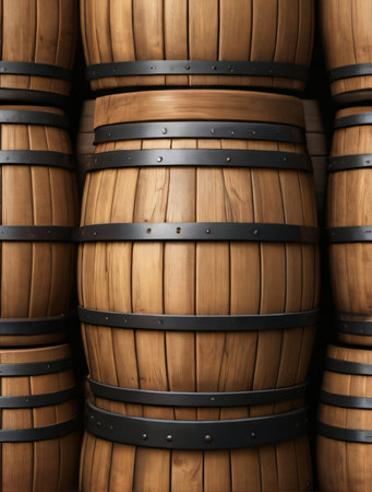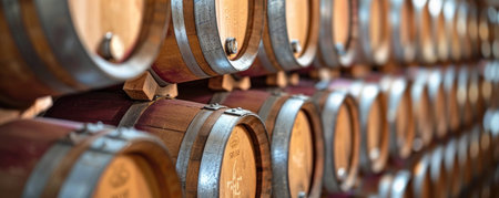 Background of aged oak wine barrels, evoking the ambiance of a vineyard