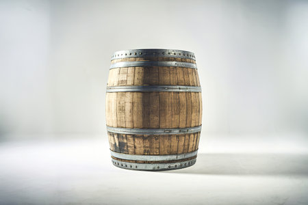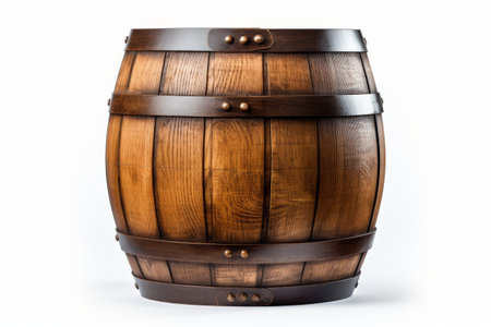 Rustic wooden barrel isolated on white, ideal for vineyard and rustic lifestyle themes
