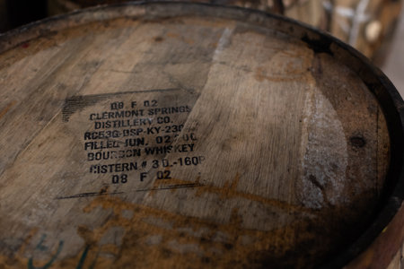 Close-up of used American oak barrel after aging bourbonJanuary 2024