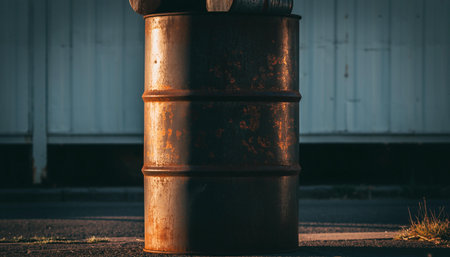 A close-up view of a chemical drum’s surface, showcasing its quality and detail, with soft lighting enhancing its visual appeal. --ar 16:9 --v 6 Job ID: d0184b95-4a14-4bb9-a37b-1ecfb2e6234f