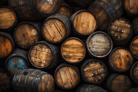 A creative composition of stacked beer kegs and wine barrels arranged in a visually striking pattern, highlighting their shapes and textures. --ar 3:2 --v 6 Job ID: 89959260-4b7d-42e7-9479-0f0a31ec6b1d