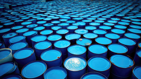 A closeup shot of blue barrels in the factory