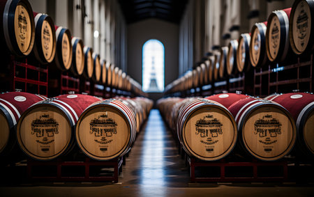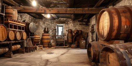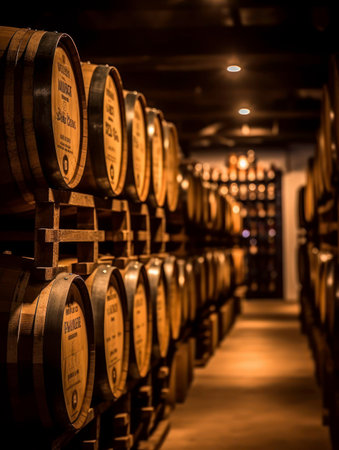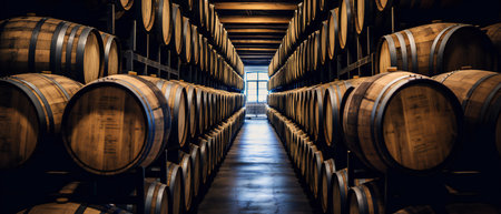 Wine Barrels in a Traditional Cellar. Generative ai. High quality illustration