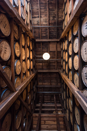Versailles, Kentucky, United States: May 3rd, 2017: Angled View of Aging Bourbon at Woodford Reserve During Distillry Tour