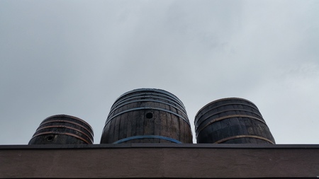 Vintage styled monochrome whisky barrels stacked