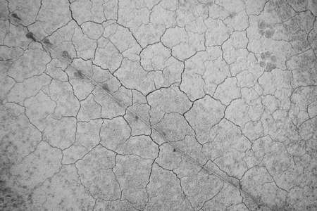 Dry desert soil background. Abstract cracked mud texture. Black and white tone - retro monochrome color style.