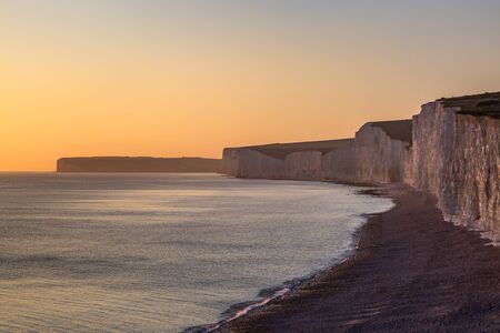 Chalk cliffs near Beachy Head on the Sussex coast, at sunset