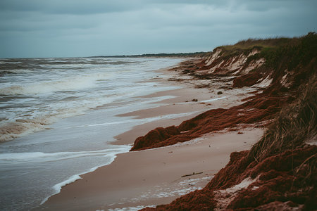 Seashore Landscape with Foamy Waves and Red Algae