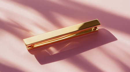 A sleek golden paper clip rests on a gentle pink surface, creating a harmonious blend of colors and textures, perfect for modern workspace imagery.