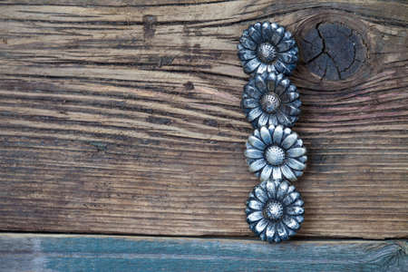 Bijouterie and jewelry on a dark background. Brooches and hairpins earrings and pendants. Copy space