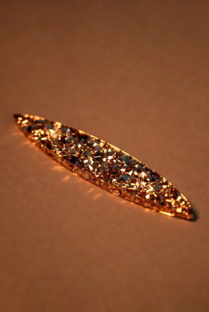 A stunning gold metal bar rests elegantly on a glittery surface, illuminated by a beautiful bokeh effect, representing wealth and luxury in a captivating manner.