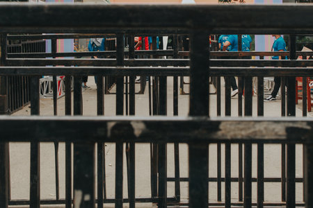 close-up of a number of mobile metal fences