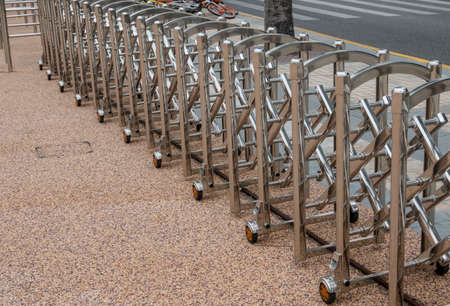 Stainless steel expandable metal fence or barrier across a street in China