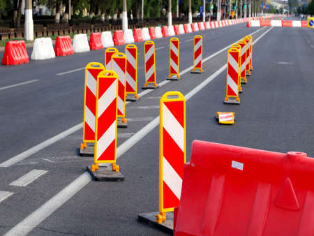 plastic road fencing on the street of a modern city