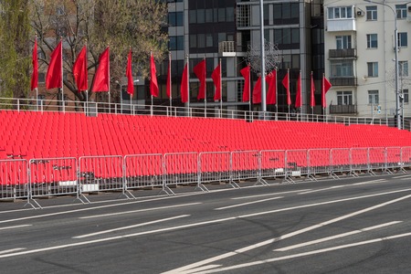 SAMARA - MAY 5: Empty stands before military parade during celebration of the Victory day in the Great Patriotic War (World War II) on the square on May 5, 2018 in Samara, Russia.
