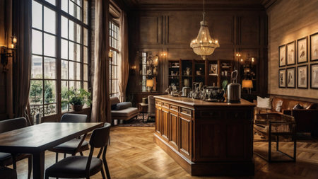 Cozy interior of a modern cafe with ambient lighting during evening hours