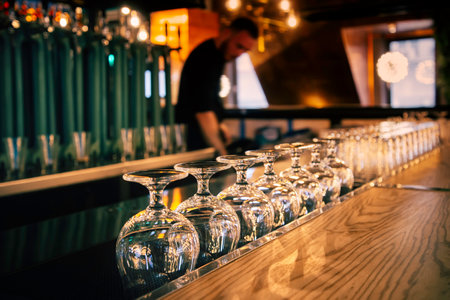 Empty glasses above a bar counter