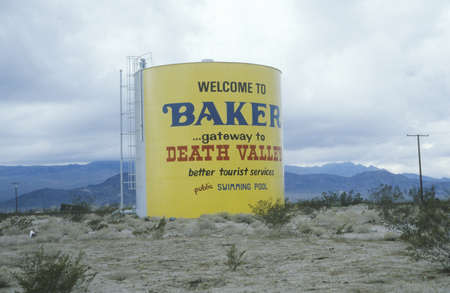 A sign that reads Welcome to BakerÉgateway to Death ValleyÓ