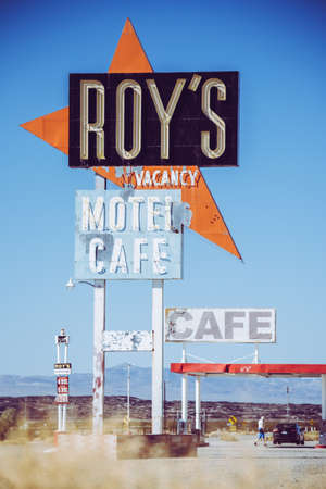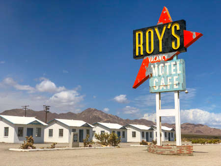 Legendary Roys Motel and Cafe in Amboy, California, USA. Roys Motel and Cafe was a classic stop for gasoline or rest in the Mojave desert on historic Highway Route 66.