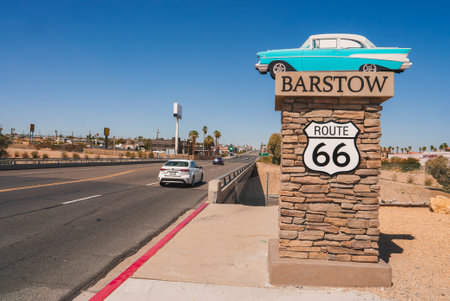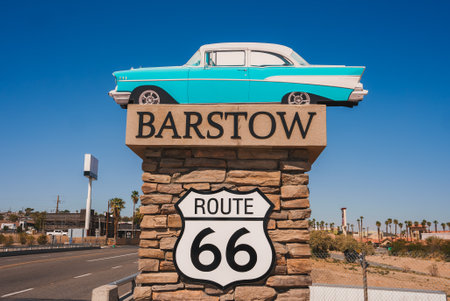 Iconic Route 66 Sign with Vintage Car, Barstow, USA