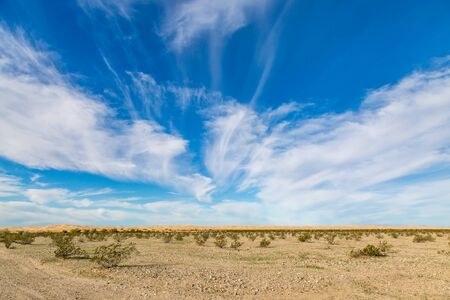 A sunset over the Sonoran Desert of Arizona with high altitude clouds panorama.