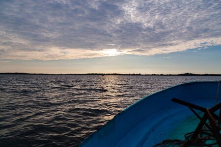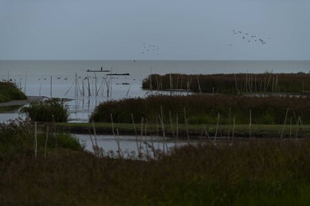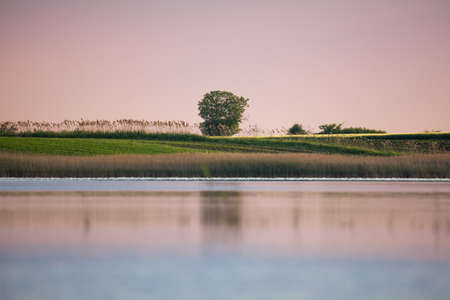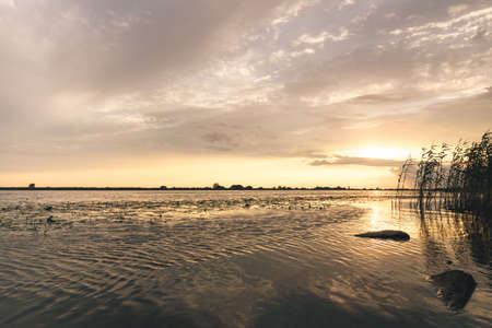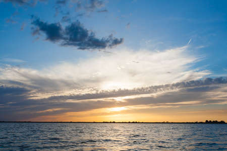 Sunset over water from Delta del Po, Italian landscape. water and sky