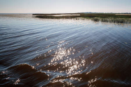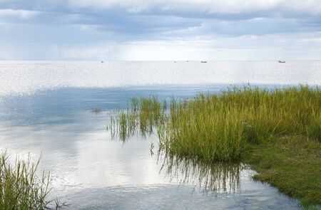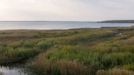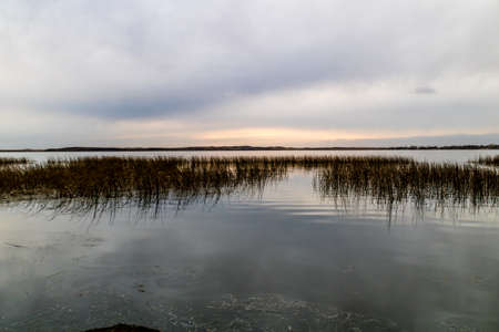autumn view of the lake, foreground of the lake meadow, Lake Burtnieki, Latvia